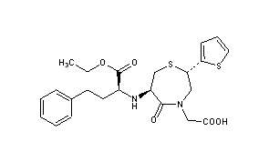 Additional Names: (+)-(2S,6R)-6-[[(1S)-1-carboxy-3-phenylpropyl]amino]tetrahydro-5-oxo-2-(2-thienyl)-1,4-thiazepine-4(5H)-acetic acid, 6-ethyl ester