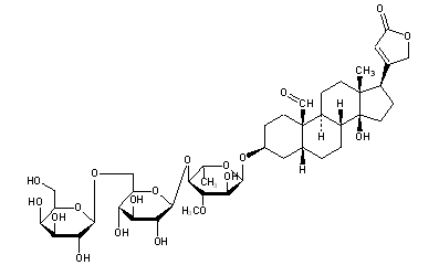 CAS Name: (3b,5b)-3-[(O-b-D-Glucopyranosyl-(1®6)-O-D-glucopyranosyl-(1®4)-6-deoxy-3-O-methyl-a-L-glucopyranosyl)oxy]-14-hydroxy-19-oxocard-20(22)-enolide
