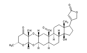 CAS Name: [2a(2S,3R,6R),3b,5a]-14-Hydroxy-19-oxo-2,3-[(tetrahydro-3-hydroxy-6-methyl-4-oxo-2H-pyran-3,2-diyl)bis(oxy)]card-20(22)-enolide