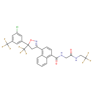| SMILES | c1(ccc(c2ccccc12)C3=NOC(C3)(C(F)(F)F)c4cc(cc(c4)C(F)(F)F)Cl)C(=O)NCC(NCC(F)(F)F)=O |