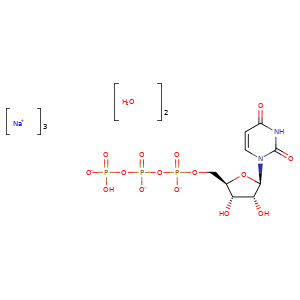 | 异名/同义词 | SODIUM 5'-O-(((((HYDROXYPHOSPHINATO)OXY)PHOSPHINATO)OXY)PHOSPHINATO)URIDINE HYDRATE (3:1:2) TRISODIUM, ((((2R,3S,4R,5R)-5-(2,4-DIOXOPYRIMIDIN-1-YL)-3,4-DIHYDROXYOXOLAN-2-YL)METHOXY-OXIDOPHOSPHORYL)OXY-OXIDOPHOSPHORYL) HYDROGEN PHOSPHATE, DIHYDRATE URIDINE 5'-(TETRAHYDROGEN TRIPHOSPHATE), SODIUM SALT, HYDRATE (1:3:2) URIDINE 5'-TRIPHOSPHATE TRISODIUM SALT DIHYDRATE SS-7954 TRISODIUM URIDINE 5'-TRIPHOSPHATE DIHYDRATE