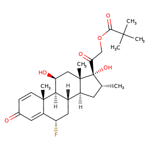 | 异名/同义词 | PARAMETHASONE TRIMETHYLACETATE PREGNA-1,4-DIENE-3,20-DIONE, 21-(2,2-DIMETHYL-1-OXOPROPOXY)-6-FLUORO-11,17-DIHYDROXY-16-METHYL-, (6.ALPHA.,11.BETA.,16.ALPHA.)- PREGNA-1,4-DIENE-3,20-DIONE, 6.ALPHA.-FLUORO-11.BETA.,17,21-TRIHYDROXY-16.ALPHA.-METHYL-, 21-PIVALATE