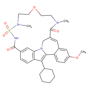 c12ccc3c(c1)n4c(c3C5CCCCC5)-c6c(C=C(C4)C(N(CCOCCN(C)S(NC2=O)(=O)=O)C)=O)cc(cc6)OC