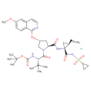 [C@H]1(C[C@]1(NC([C@H]2N(C[C@@H](C2)Oc3c4c(cc(OC)cc4)ccn3)C([C@@H](NC(OC(C)(C)C)=O)C(C)(C)C)=O)=O)C(=O)[N-]S(=O)(=O)C5CC5)C=C.[K+]