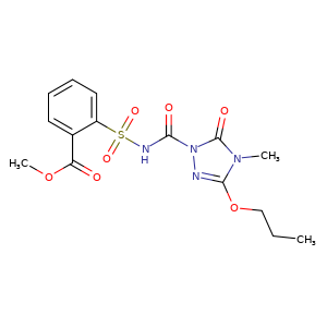 | 异名/同义词 | METHYL 2-((((4,5-DIHYDRO-4-METHYL-5-OXO-3-PROPOXY-1H-1,2,4-TRIAZOL-1-YL)CARBONYL)AMINO)SULFONYL)BENZOATE METHYL 2-((4,5-DIHYDRO-4-METHYL-5-OXO-3-PROPOXY-1H-1,2,4-TRIAZOLE-1-CARBOXAMIDO)SULFONYL)BENZOATE PROPOXYCARBAZONE PROPOXYCARBAZONE [ISO] PROPOXYCARBAZONE [MI]