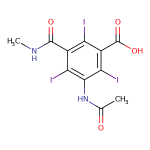 | SMILES | c1(c(c(NC(=O)C)c(c(c1I)C(=O)O)I)I)C(=O)NC |