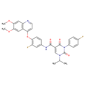 | 异名/同义词 | 5-PYRIMIDINECARBOXAMIDE, N-(4-((6,7-DIMETHOXY-4-QUINOLINYL)OXY)-3-FLUOROPHENYL)-3-(4-FLUOROPHENYL)-1,2,3,4-TETRAHYDRO-1-(1-METHYLETHYL)-2,4-DIOXO- CEP-40783 N-(4-((6,7-DIMETHOXY-4-QUINOLINYL)OXY)-3-FLUOROPHENYL)-3-(4-FLUOROPHENYL)-1,2,3,4-TETRAHYDRO-1-(1-METHYLETHYL)-2,4-DIOXO-5-PYRIMIDINECARBOXAMIDE RXDX-106