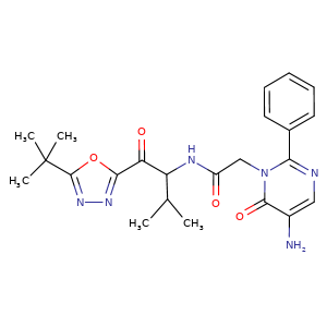 c1nc(n(c(c1N)=O)CC(NC(C(C)C)C(=O)c2oc(nn2)C(C)(C)C)=O)-c3ccccc3