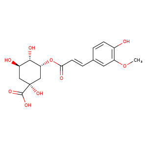| 异名/同义词 | 3-FERULOYLQUINIC ACID 3-O-(E)-FERULOYLQUINIC ACID 3-O-FERULOYLQUINIC ACID CYCLOHEXANECARBOXYLIC ACID, 1,3,4-TRIHYDROXY-5-(((2E)-3-(4-HYDROXY-3-METHOXYPHENYL)-1-OXO-2-PROPEN-1-YL)OXY)-, (1R,3R,4S,5R)- CYCLOHEXANECARBOXYLIC ACID, 1,3,4-TRIHYDROXY-5-((3-(4-HYDROXY-3-METHOXYPHENYL)-1-OXO-2-PROPEN-1-YL)OXY)-, (1R,3R,4S,5R)-