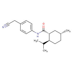 | 异名/同义词 | CYANOMETHYLPHENYL MENTHANE CARBOXAMIDE CYCLOHEXANECARBOXAMIDE, N-(4-(CYANOMETHYL)PHENYL)-5-METHYL-2-(1-METHYLETHYL)-, (1R,2S,5R)- EVERCOOL 180 EVERCOOL G-180 FEMA NO. 4496 G-180 N-(P-BENZENEACETONITRILE)MENTHANECARBOXAMIDE N-P-BENZENEACETONITRILE MENTHANECARBOXAMIDE N-P-BENZENEACETONITRILE MENTHANECARBOXAMIDE, (-)- N-P-BENZENEACETONITRILE MENTHANECARBOXAMIDE, (1R,3R,4S)- N-PARA-BENZENE ACETONITRILE MENTHANE CARBOXAMIDE