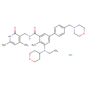 | SMILES | N(C1CCOCC1)(c2cc(-c3ccc(CN4CCOCC4)cc3)cc(C(=O)NCc5c(=O)[nH]c(C)cc5C)c2C)CC.Cl |