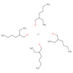 | 异名/同义词 | 1-HEXANOL, 2-ETHYL-, TITANATE(IV) 1-HEXANOL, 2-ETHYL-, TITANIUM(4+) SALT 1-HEXANOL, 2-ETHYL-, TITANIUM(4+) SALT (4:1) 2-ETHYL-1-HEXANOL TITANIUM(4+) SALT 2-ETHYLHEXYL ORTHOTITANATE 2-ETHYLHEXYL TITANATE NSC-159034 TETRA(2-ETHYLHEXYL) TITANATE TETRA(2-ETHYLHEXYLOXY)TITANIUM TETRAKIS(2-ETHYLHEXYL) ORTHOTITANATE TETRAKIS(2-ETHYLHEXYL) TITANATE TETRAKIS(2-ETHYLHEXYLOXY)TITANIUM TITANIUM 2-ETHYLHEXOXIDE TITANIUM TETRAKIS(2-ETHYLHEXANOLATE) TITANIUM TETRAKIS(2-ETHYLHEXANOXIDE) TITANIUM TETRAKIS(2-ETHYLHEXOXIDE) TITANIUM(IV) 2-ETHYLHEXOXIDE |