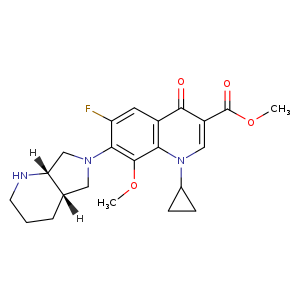 | 异名/同义词 | 3-QUINOLINECARBOXYLIC ACID, 1-CYCLOPROPYL-6-FLUORO-1,4-DIHYDRO-8-METHOXY-7-((4AS,7AS)-OCTAHYDRO-6H-PYRROLO(3,4-B)PYRIDIN-6-YL)-4-OXO-, METHYL ESTER METHYL 1-CYCLOPROPYL-6-FLUORO-8-METHOXY-7-((4AS,7AS)-OCTAHYDRO-6H-PYRROLO(3,4-B)PYRIDIN-6-YL)-4-OXO-1,4-DIHYDROQUINOLINE-3-CARBOXYLATE MOXIFLOXACIN HYDROCHLORIDE IMPURITY H [EP IMPURITY] MOXIFLOXACIN METHYL ESTER