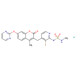 | SMILES | c1nc(ncc1)Oc2ccc3c(c(c(oc3c2)=O)Cc4c(c(ncc4)[N-]S(NC)(=O)=O)F)C.[K+] |