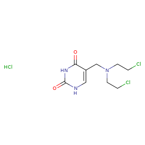 | 异名/同义词 | 2,4(1H,3H)-PYRIMIDINEDIONE, 5-((BIS(2-CHLOROETHYL)AMINO)METHYL)-, HYDROCHLORIDE (1:1) 5-(BIS(2-CHLOROETHYL)AMINOMETHYL)-1H-PYRIMIDINE-2,4-DIONE HYDROCHLORIDE 5-(BIS(2-CHLOROETHYL)AMINOMETHYL)URACIL HYDROCHLORIDE KC 433 KC-433 NSC-171346 NSC-50583 THYMINALKAMINE URACIL, 5-((BIS(2-CHLOROETHYL)AMINO)METHYL)-, HYDROCHLORIDE YPENYL