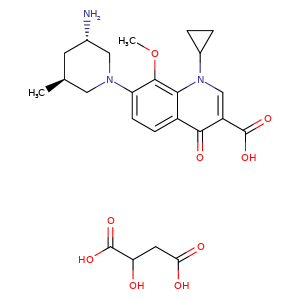 | 异名/同义词 | BUTANEDIOIC ACID, 2-HYDROXY-, COMPD. WITH 7-((3S,5S)-3-AMINO-5-METHYL-1-PIPERIDINYL)-1-CYCLOPROPYL-1,4-DIHYDRO-8-METHOXY-4-OXO-3-QUINOLINECARBOXYLIC ACID BUTANEDIOIC ACID, 2-HYDROXY-, COMPD. WITH 7-((3S,5S)-3-AMINO-5-METHYL-1-PIPERIDINYL)-1-CYCLOPROPYL-1,4-DIHYDRO-8-METHOXY-4-OXO-3-QUINOLINECARBOXYLIC ACID (1:1) NEMONOXACIN MALATE ANHYDROUS NEMONOXACIN MALATE [WHO-DD]