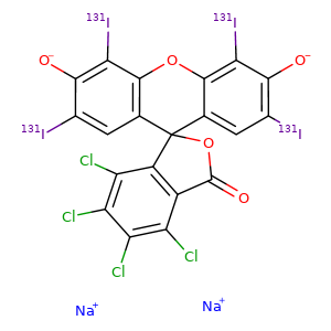 | SMILES | c1(cc2c(-c3c(c(c(c(Cl)c3C([O-])=O)Cl)Cl)Cl)c4-c(oc2c(c1[O-])[131I])c(c(c([131I])c4)=O)[131I])[131I].[Na+].[Na+] |