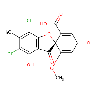O=C(O)C1=CC(=O)C=C([C@@]21Oc3c(Cl)c(C)c(c(c3C2=O)O)Cl)OC