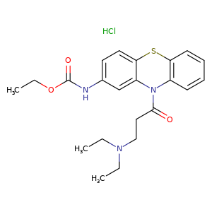 | 异名/同义词 | CARBAMIC ACID, (10-(3-(DIETHYLAMINO)-1-OXOPROPYL)-10H-PHENOTHIAZIN-2-YL)-, ETHYL ESTER, MONOHYDROCHLORIDE ETACIZIN HYDROCHLORIDE ETHACIZIN HYDROCHLORIDE ETHACIZINE HYDROCHLORIDE ETHACIZINE HYDROCHLORIDE [WHO-DD] ETHYL 10-(3-(DIETHYLAMINO)PROPIONYL)PHENOTHIAZINE-2-CARBAMATE HYDROCHLORIDE