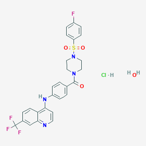 S(N1CCN(C(c2ccc(Nc3c4c(cc(C(F)(F)F)cc4)ncc3)cc2)=O)CC1)(c5ccc(cc5)F)(=O)=O.Cl.O