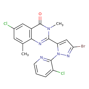 | 异名/同义词 | 2-(3-BROMO-1-(3-CHLORO-2-PYRIDINYL)-1H-PYRAZOL-5-YL)-6-CHLORO-3,8-DIMETHYL-4(3H)-QUINAZOLINONE 4(3H)-QUINAZOLINONE, 2-(3-BROMO-1-(3-CHLORO-2-PYRIDINYL)-1H-PYRAZOL-5-YL)-6-CHLORO-3,8-DIMETHYL-