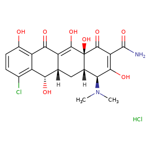 | SMILES | [C@@]12(C(=C3C(c4c(ccc(c4[C@H]([C@]3(C[C@]1([C@@H](C(O)=C(C2=O)C(=O)N)N(C)C)[H])[H])O)Cl)O)=O)O)O.Cl |