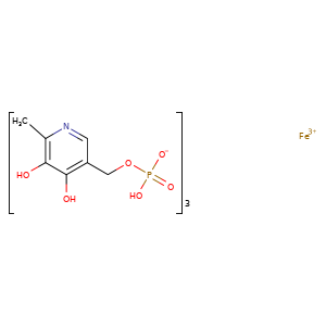 c1(ncc(COP(O)(=O)[O-])c(O)c1O)C.[Fe+3].c1(ncc(c(c1O)O)COP(O)(=O)[O-])C.c1(ncc(c(c1O)O)COP(O)(=O)[O-])C