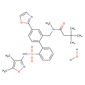 | 异名/同义词 | BMS-207940-02 BUTANAMIDE, N-((2'-(((4,5-DIMETHYL-3-ISOXAZOLYL) AMINO)SULFONYL)-4-(2-OXAZOLYL) (1,1'-BIPHENYL)-2-YL)METHYL)-N,3,3-TRIMETHYL-, MONOHYDRATE EDONENTAN EDONENTAN [USAN] N-(2-(2-((4,5-DIMETHYLISOXAZOL-3-YL)SULFAMOYL)PHENYL)-5-(OXAZOL-2-YL)BENZYL)-N,3,3-TRIMETHYLBUTANAMIDE, MONOHYDRATE