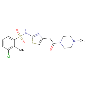 c1(c(c(ccc1)Cl)C)S(=O)(=O)Nc2scc(n2)CC(=O)N3CCN(CC3)C