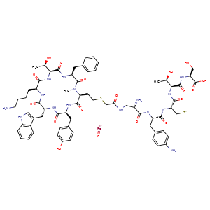 O=C(O)[C@H](CO)NC(=O)[C@H]([C@H](O)C)NC([C@@H]([N-]C([C@@H]([N-]C([C@@H](N)CNC(CSCC[C@@H]1N(C([C@@H](NC([C@H]([C@H](O)C)NC([C@@H](NC([C@H](NC([C@@H](NC1=O)Cc2ccc(cc2)O)=O)Cc3c[nH]c4c3cccc4)=O)CCCCN)=O)=O)Cc5ccccc5)=O)C)=O)=O)Cc6ccc(cc6)N)=O)C[S-])=O.[188Re+3]=O / INGREDIENT SUBSTANCE