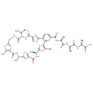 C1(c2c(C)oc(n2)CNC(=O)[C@H](C(C)C)NC(c3nc(-c4c(nc(cc4)C(=O)NC(=C)C(NC(C(NC(C(=O)N)=C)=O)=C)=O)-c5nc([C@@H](NC(c6nc([C@@H](N1)C)sc6)=O)C)oc5C)sc3)=O)=O