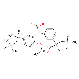 c1(C2c3cc(ccc3OC2=O)C(C)(C)CC(C)(C)C)cc(ccc1OC(=O)C)C(C)(C)CC(C)(C)C