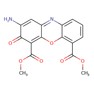 | SMILES | c-12c(c(=O)c(cc1nc3c(o2)c(C(=O)OC)ccc3)N)C(=O)OC |