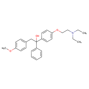C(c1ccc(OCCN(CC)CC)cc1)(c2ccccc2)(Cc3ccc(OC)cc3)O