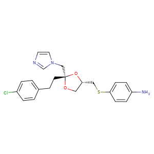 | 异名/同义词 | 1-(((2S,4S)-4-(((P-AMINOPHENYL)THIO)METHYL)-2-(P-CHLOROPHENETHYL)-1,3-DIOXOLAN-2-YL)METHYL)IMIDAZOLE AZALANSTAT BENZENAMINE, 4-(((2-(2-(4-CHLOROPHENYL)ETHYL)-2-(1H-IMIDAZOL-1-YLMETHYL)-1,3-DIOXOLAN-4-YL)METHYL)THIO)-, (2S-CIS)- AZALANSTAT [INN]