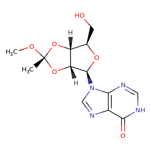 | SMILES | C([C@H]1O[C@@H](n2cnc3c([nH]cnc32)=O)[C@]4([H])O[C@](C)(OC)O[C@@]41[H])O |