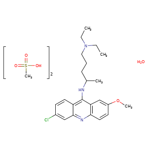 | 异名/同义词 | 1,4-PENTANEDIAMINE, N4-(6-CHLORO-2-METHOXY-9-ACRIDINYL)-N1,N1-DIETHYL-, METHANESULFONATE, HYDRATE (1:2:1) MEPACRINE METHANESULFONATE MONOHYDRATE QUINACRINE METHANESULFONATE MONOHYDRATE QUINACRINE METHANESULFONATE MONOHYDRATE [MI]