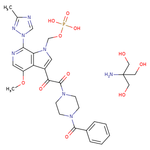 | SMILES | N1(C(c2ccccc2)=O)CCN(C(C(=O)c3cn(c4c(ncc(c43)OC)-n5nc(nc5)C)COP(=O)(O)O)=O)CC1.C(CO)(CO)(CO)N |