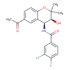 [C@@H]1(c2c(ccc(c2)C(=O)C)OC([C@H]1O)(C)C)NC(c3cc(Cl)c(cc3)F)=O