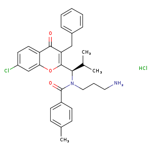 BENZAMIDE, N-(3-AMINOPROPYL)-N-((1R)-1-(7-CHLORO-4-OXO-3-(PHENYLMETHYL)-4H-1-BENZOPYRAN-2-YL)-2-METHYLPROPYL)-4-METHYL-, HYDROCHLORIDE (1:1)