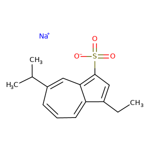 | 异名/同义词 | 1-AZULENESULFONIC ACID, 3-ETHYL-7-(1-METHYLETHYL)-, SODIUM SALT 1-AZULENESULFONIC ACID, 3-ETHYL-7-(1-METHYLETHYL)-, SODIUM SALT (1:1) 3-ETHYL-7-ISOPROPYL-1-AZULENESULFONIC ACID SODIUM SALT AZULETIL SODIUM EGUALEN SODIUM EGUALEN SODIUM [WHO-DD] KT 1-32 SODIUM 3-ETHYL-7-ISOPROPYL-1-AZULENESULFONATE