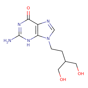 | SMILES | c12c(c(=O)[nH]c(n1)N)ncn2CCC(CO)CO |