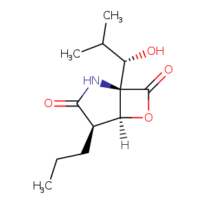 | 异名/同义词 | (1R,4R,5S)-1-((1S)-1-HYDROXY-2-METHYLPROPYL)-4-PROPYL-6-OXA-2-AZABICYCLO(3.2.0)HEPTANE-3,7-DIONE (1S,2R,5R)-5-((1S)-1-HYDROXY-2-METHYL-PROPYL)-2-PROPYL-7-OXA-4-AZABICYCLO(3.2.0)HEPTANE-3,6-DIONE 6-OXA-2-AZABICYCLO(3.2.0)HEPTANE-3,7-DIONE, 1-((1S)-1-HYDROXY-2-METHYLPROPYL)-4-PROPYL-, (1R,4R,5S)- LDP-519 MLN-519 PS-519