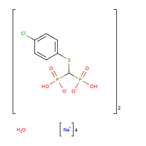 | SMILES | O.[Na+].c1cc(ccc1Cl)SC(P([O-])(=O)O)P([O-])(=O)O.[Na+].[Na+].[Na+].c1cc(ccc1Cl)SC(P(O)(=O)[O-])P(O)(=O)[O-] |