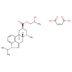 | 异名/同义词 | 2-HYDROXYPROPYL 1-ISOPROPYL-6-METHYLERGOLINE-8.BETA.-CARBOXYLATE MALEATE 4-ISOPROPYL-7-METHYL-9-(2-HYDROXYPROPOXYCARBONYL)-4,6,6.ALPHA.7.8,9,10,10.ALPHA.-OCTAHYDROINDOLO(4,3-FG)QUINOLINE MALEATE ERGOLINE-8-CARBOXYLIC ACID, 6-METHYL-1-(1-METHYLETHYL)-, 2-HYDROXYPROPYL ESTER, (8.BETA.)-, (2Z)-2-BUTENEDIOATE (SALT) ERGOLINE-8.BETA.-CARBOXYLIC ACID, 1-ISOPROPYL-6-METHYL-, 2-HYDROXYPROPYL ESTER, MALEATE (SALT)