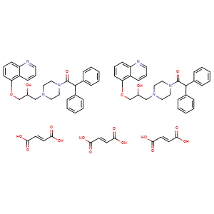 | SMILES | C(O)(=O)/C=C/C(O)=O.c1(ccccc1)C(C(N2CCN(CC2)CC(COc3cccc4c3cccn4)O)=O)c5ccccc5.c1(ccccc1)C(C(N2CCN(CC2)CC(COc3cccc4c3cccn4)O)=O)c5ccccc5.C(O)(=O)/C=C/C(O)=O.C(O)(=O)/C=C/C(O)=O |