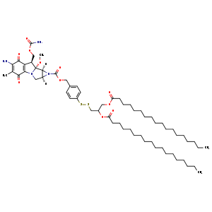 | 异名/同义词 | AZIRINO(2',3':3,4)PYRROLO(1,2-A)INDOLE-1(2H)-CARBOXYLIC ACID, 6-AMINO-8-(((AMINOCARBONYL)OXY)METHYL)-1A,4,7,8,8A,8B-HEXAHYDRO-8A-METHOXY-5-METHYL-4,7-DIOXO-, (4-((2,3-BIS((1-OXOOCTADECYL)OXY)PROPYL)DITHIO)PHENYL)METHYL ESTER, (1AS,8S,8AR,8BS)- JNJ-27548547 MITOMYCIN C LIPID-BASED PRODRUG (MLP) MMC LIPID-BASED PRODRUG (MLP) PROMITIL