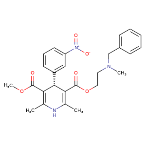 | 异名/同义词 | (-)-NICARDIPINE (S)-NICARDIPINE 3,5-PYRIDINEDICARBOXYLIC ACID, 1,4-DIHYDRO-2,6-DIMETHYL-4-(3-NITROPHENYL)-, 3-METHYL 5-(2-(METHYL(PHENYLMETHYL)AMINO)ETHYL) ESTER, (4S)- 3,5-PYRIDINEDICARBOXYLIC ACID, 1,4-DIHYDRO-2,6-DIMETHYL-4-(3-NITROPHENYL)-, METHYL 2-(METHYL(PHENYLMETHYL)AMINO)ETHYL ESTER, (4S)- 3,5-PYRIDINEDICARBOXYLIC ACID, 1,4-DIHYDRO-2,6-DIMETHYL-4-(3-NITROPHENYL)-, METHYL 2-(METHYL(PHENYLMETHYL)AMINO)ETHYL ESTER, (S)- NICARDIPINE, (S)-