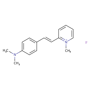| SMILES | [I-].[n+]1(c(/C=C/c2ccc(cc2)N(C)C)cccc1)C |