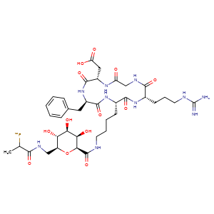 | 异名/同义词 | (18F)GALACTO-RGD 2-((2S,5R,8S,11S)-5-BENZYL-8-(4-(((2S,3R,4R,5R,6S)-6-((2-FLUORANYLPROPANOYLAMINO)METHYL)-3,4,5-TRIHYDROXY-TETRAHYDROPYRAN-2-CARBONYL)AMINO)BUTYL)-11-(3-GUANIDINOPROPYL)-3,6,9,12,15-PENTAOXO-1,4,7,10,13-PENTAZACYCLOPENTADEC-2-YL)ACETIC ACID CYCLO(L-ARGINYLGLYCYL-L-.ALPHA.-ASPARTYL-D-PHENYLALANYL-N6-(2,6-ANHYDRO-7-DEOXY-7-((2-(FLUORO-18F)-1-OXOPROPYL)AMINO)-L-GLYCERO-L-GALACTO-HEPTONOYL)-L-LYSYL) GALACTO-RGD F-18